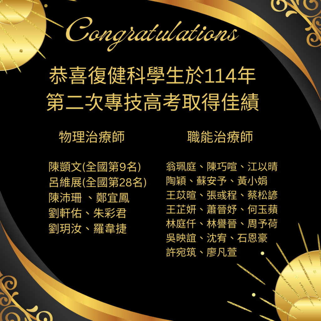 物理治療組 岳俐妏、謝佳杺、徐志成、蔡佳君、蕭凱任、蘇瑞娸、蔡佩沂、黃鈺淳、張凱禎、王旨意、張育瑄 職能治療組 […]