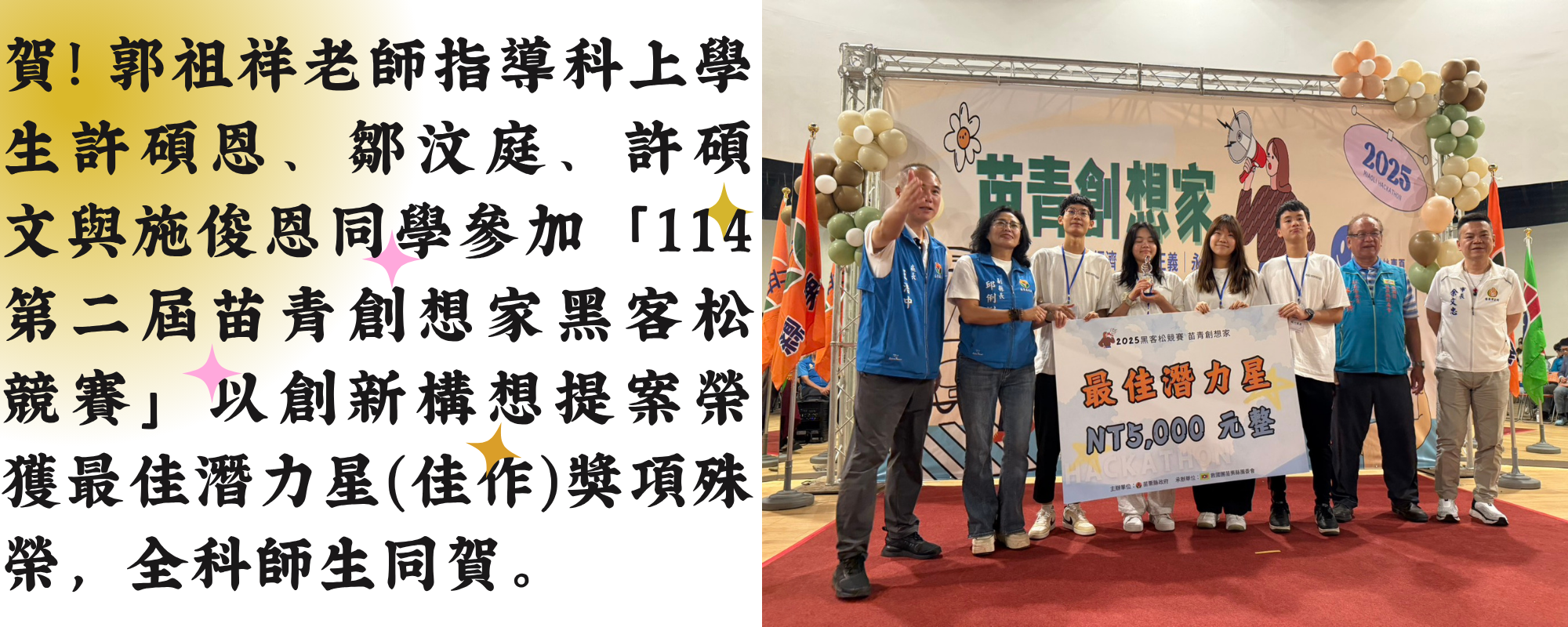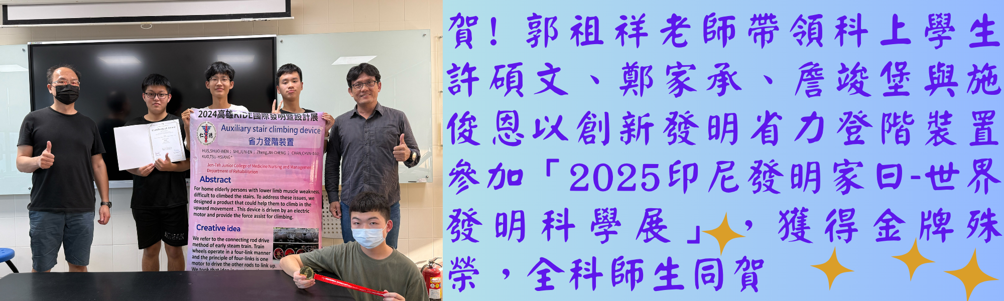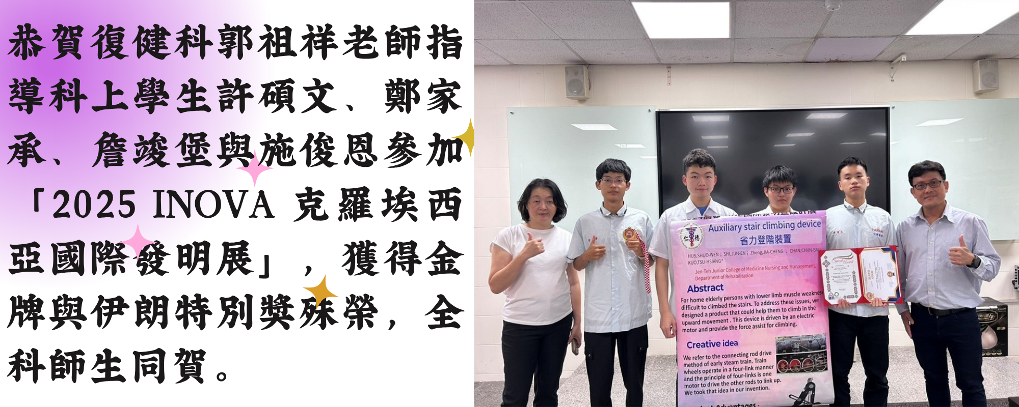 賀! 郭祖祥老師帶領復健科學生蘇安予、楊欣、林可忻參加「2025 ITEX馬來西亞國際發明展」,獲得銅牌殊榮,全科師生同賀