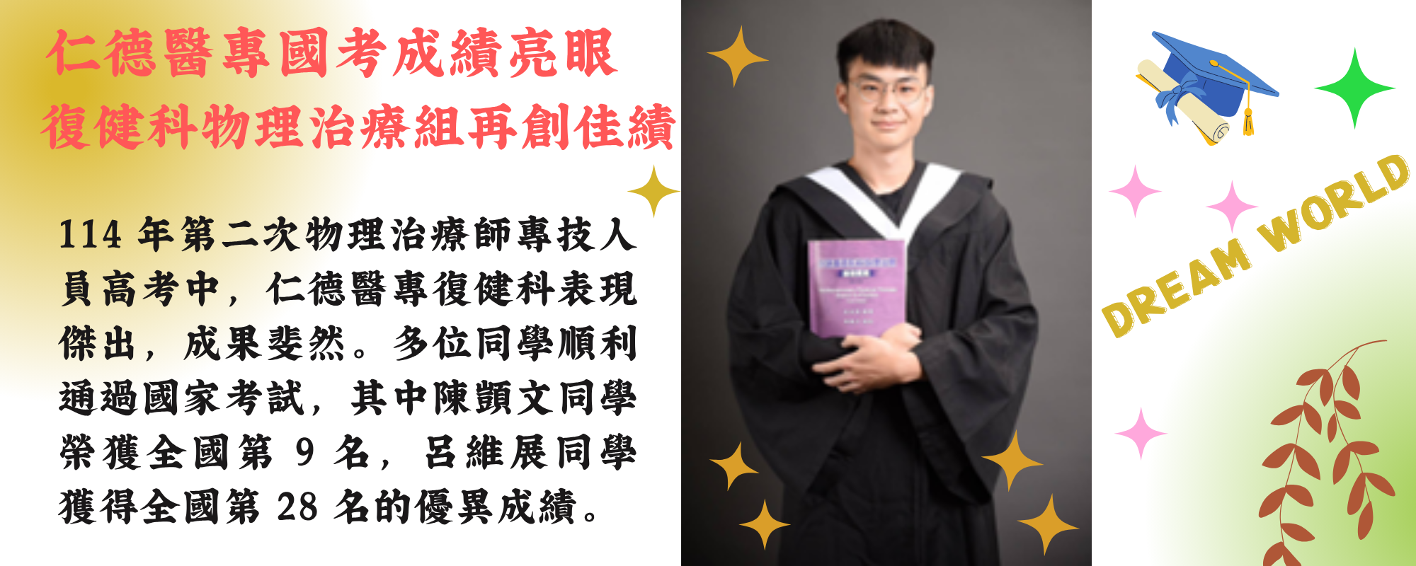 台灣北、中部五專學校中,唯一設有復健科的學校!
