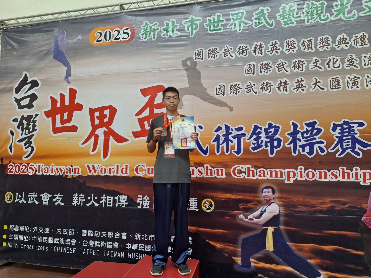 賀復健科2年1班 杜詩集 同學榮獲2025年台灣區詩界盃武術錦標賽,高中組男子組第一量級散打搏擊第3名、青少年A組南拳-詠春尋橋第3名。
