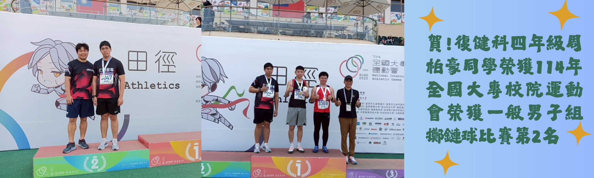 賀!復健科4年級周柏豪同學榮獲114年全國大專田徑公開賽